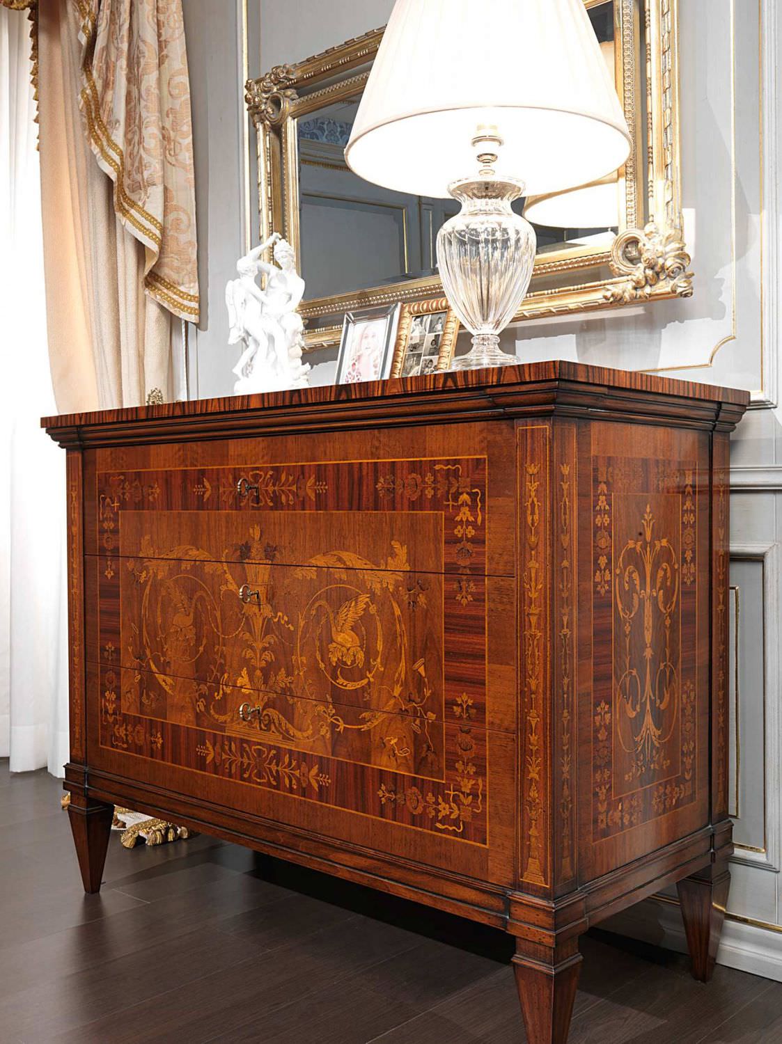 A klasszikus stílus bútorzatát több generáción keresztül öröklött, vagy műtárgyként vásárolt bútordarabok, kiegészítők alkotják. A bútorok tömör fából, faragással vagy intarziával díszített furnéros darabok. Igazán nagy értékű, míves bútorok. Az ülőbútorok ívelt formájúak, párnázottak, kárpitjuk gyönyörű bársony vagy brokát.